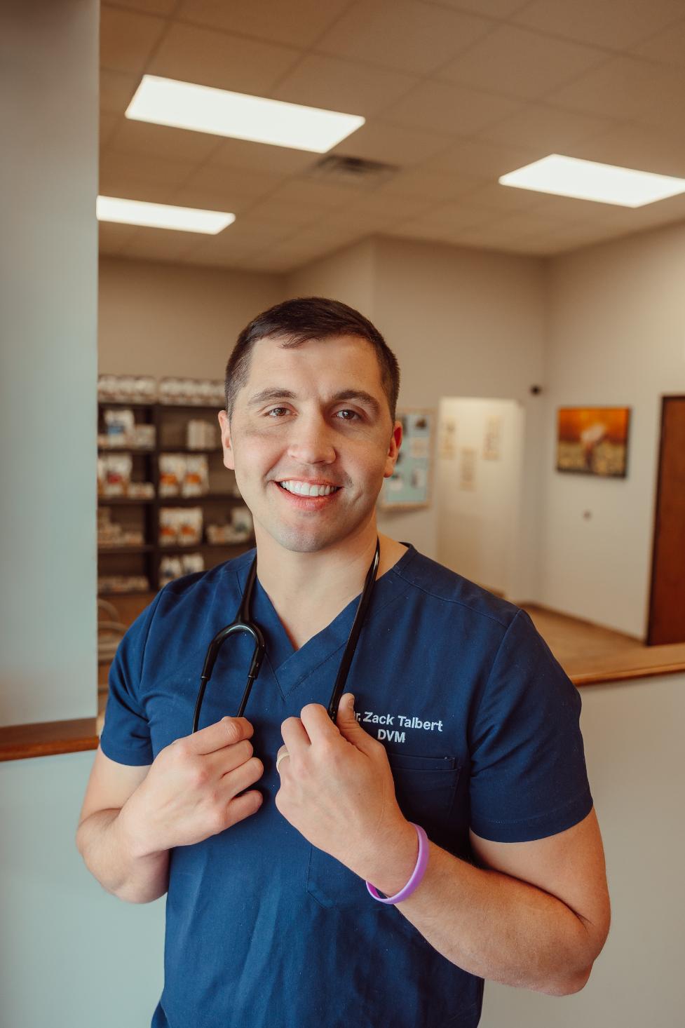 Dr. Zack Talbert grew up in rural Armington, IL. He attended Illinois Wesleyan University where he received his Bachelor's Degree in Biology in 2016. He then received his Doctorate in Veterinary Medicine from the University of Illinois in 2021. Dr. Talbert lives with his wife, Elizabeth, in Atlanta, IL. Together, they have a Bernedoodle named Remington. Dr. Talbert enjoys being in the outdoors, exercising, spending time with family, and inventing new products for the veterinary industry.